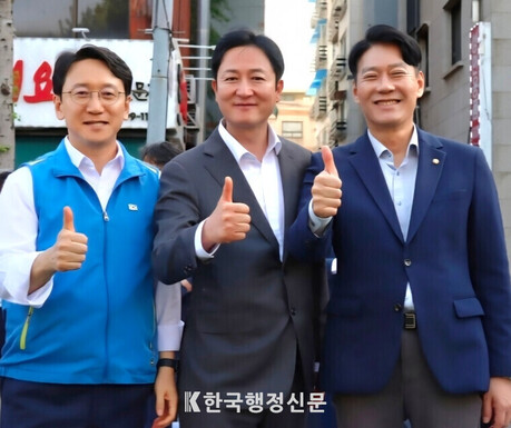 [한국행정신문 = 오정백 기자] 더불어민주당 강북구청장 이승훈 후보와 천준호 의원, 한민수 의원이 4·19 혁명 기념행사에서 엄지척을 한 모습은 향후 정치의 방향을 드러낸다.